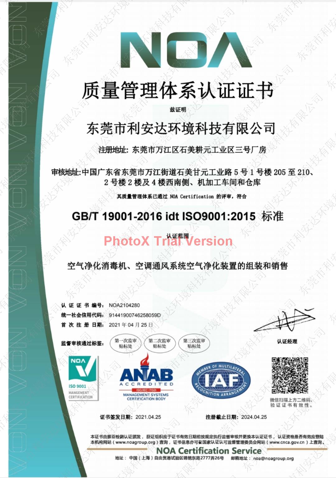 東莞市利安達環(huán)境科技有限公司隸屬利安達集團,致力于醫(yī)療、商用、家用、教育系統(tǒng)、中央空調(diào)系統(tǒng)領(lǐng)域的潔凈空氣解決方案,是一家集空氣凈化消毒機的研發(fā)、生產(chǎn)、營銷于一體的國家高新技術(shù)企業(yè)